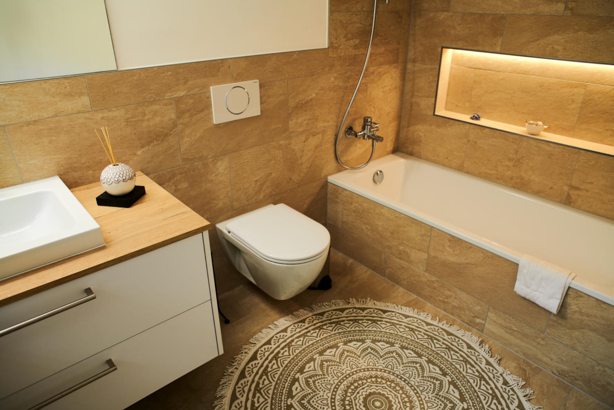 Dieselbe Farb- und Materialauswahl kann durchgängig für den ganzen Wohnraum angewendet werden: Von der Küche bis hin zu den Nasszellen. Gerne bieten wir Ihnen die Koordination und Ausführung dieser Arbeiten an.