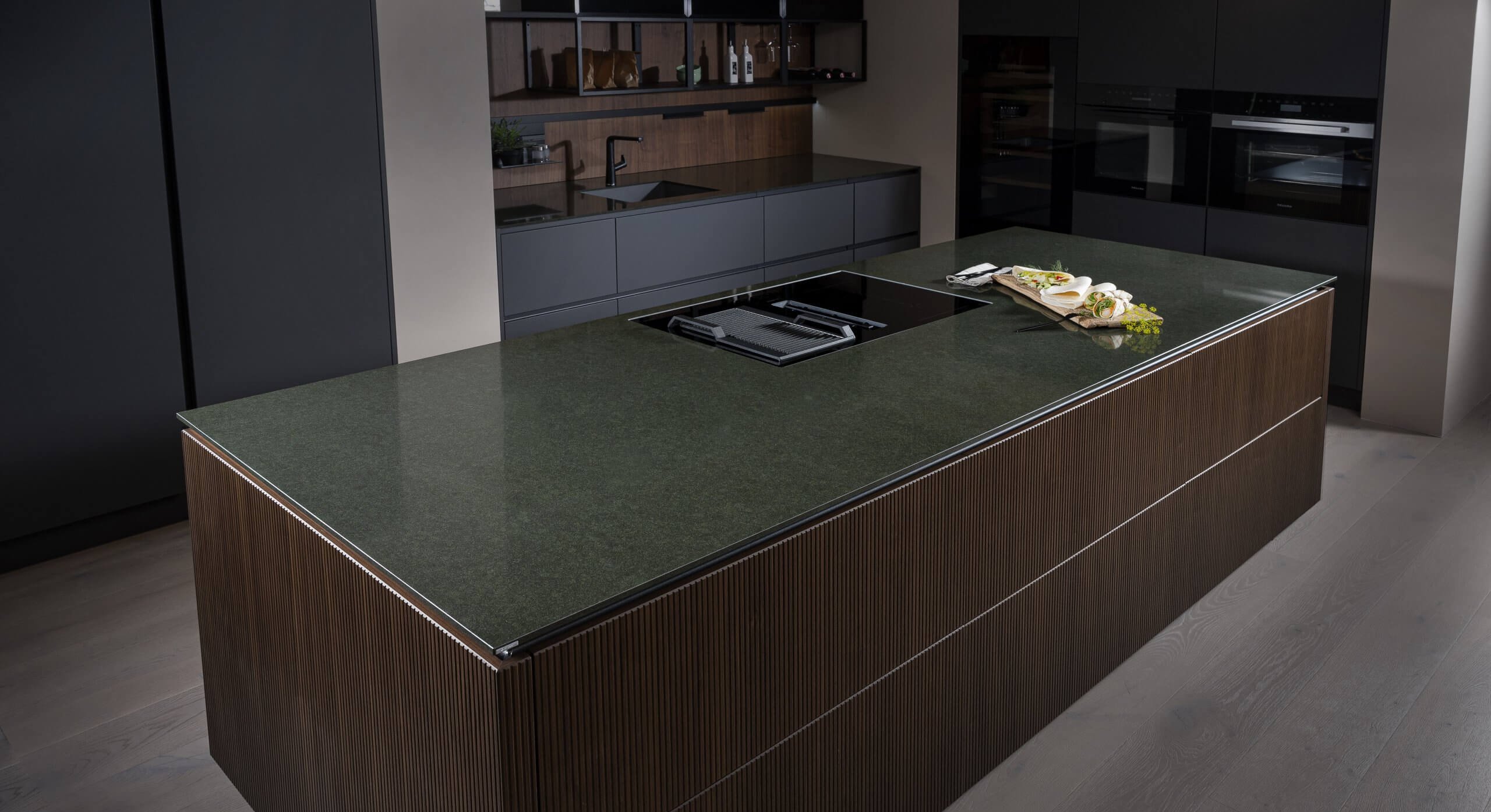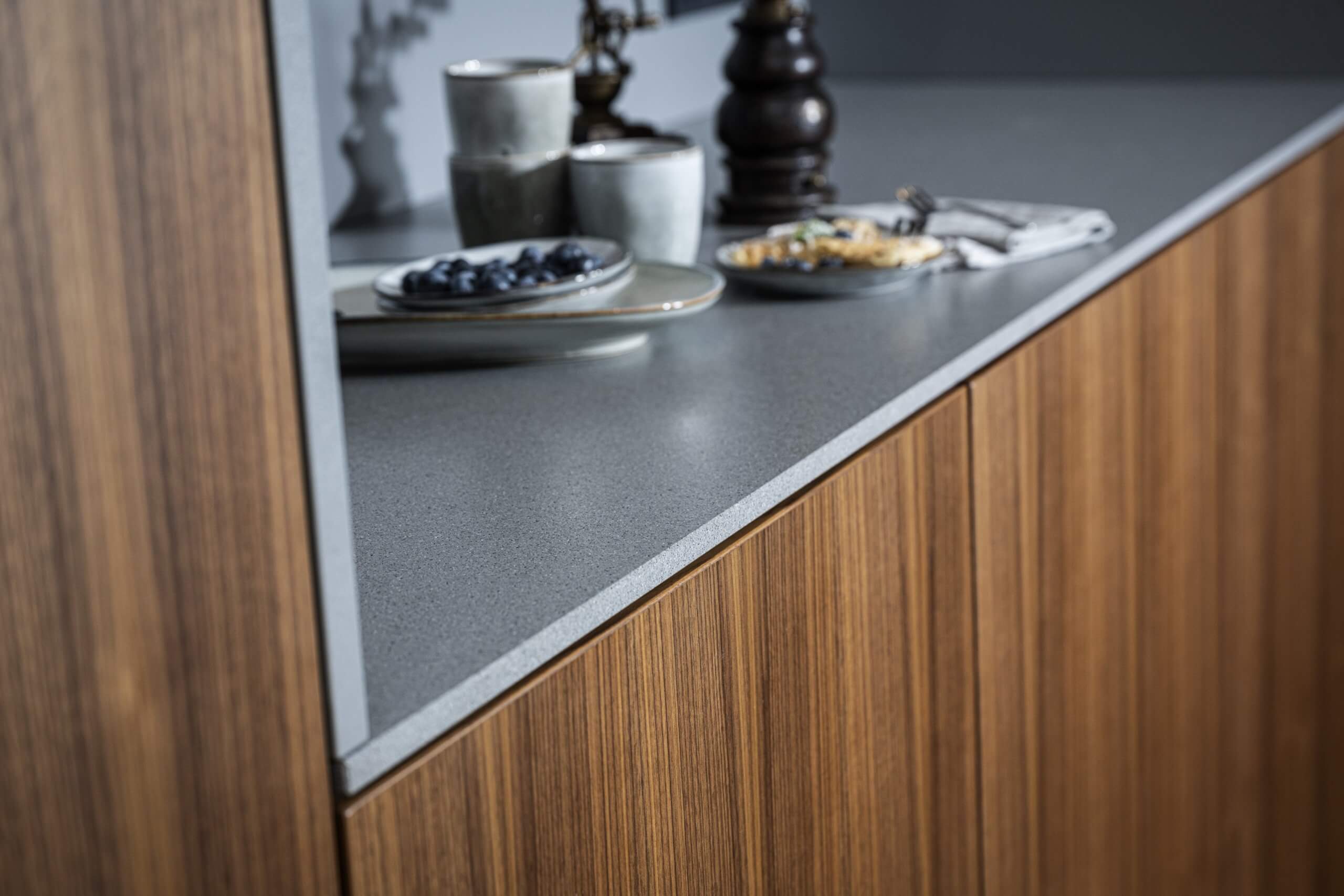 Hervorragende Eigenschaften: Mit einer Plattenstärke von 12 mm und einer 1 mm Mikrofase überzeugen die Arbeitsplatten durch hohe Stabilität. Sie sind weitgehend kratz- und schnittfest, hygienisch, pflegeleicht und hitzebeständig bis zu 200 °C